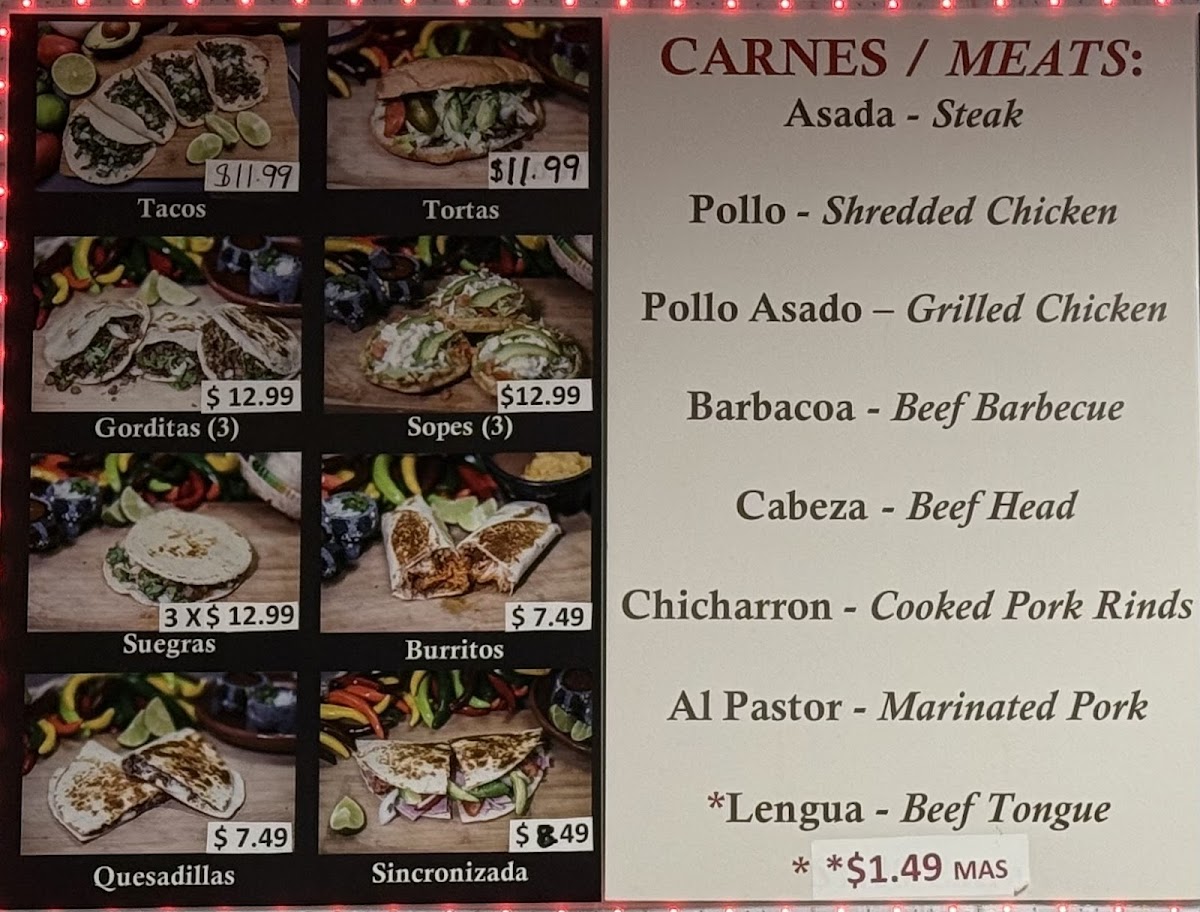 Tienda y Taqueria Flores Menu